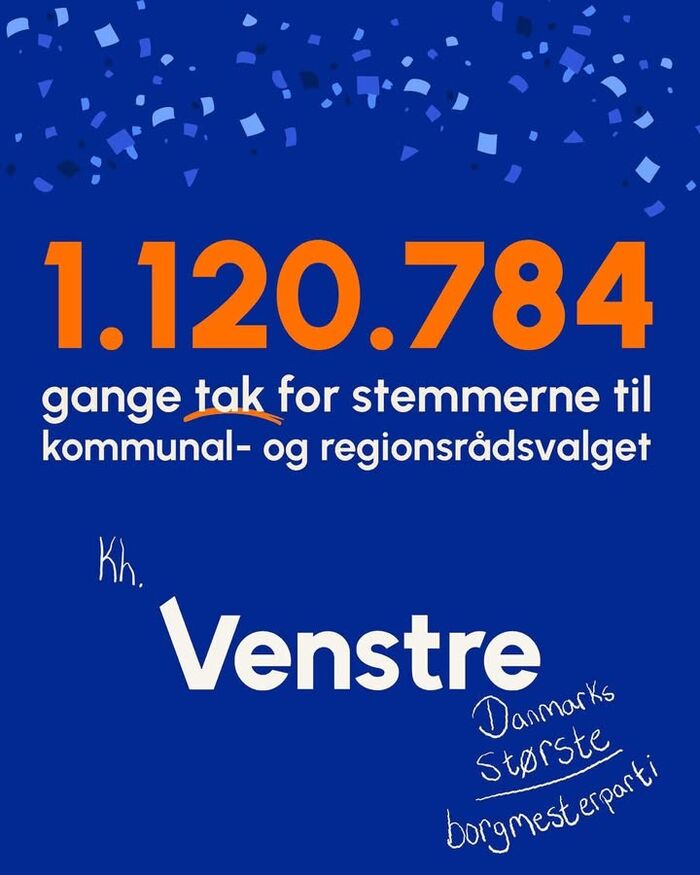 Tusind tak for støtten og opbakningen - tusind tak for snakkene på gaden og SoMe - tusind tak for de mange hårde men sjove timer til mine medkandidater fra Venstre 💙, og til alle jer fra de andre partier 💚🤍♥️🧡- det har været en kæmpe fornøjelse!